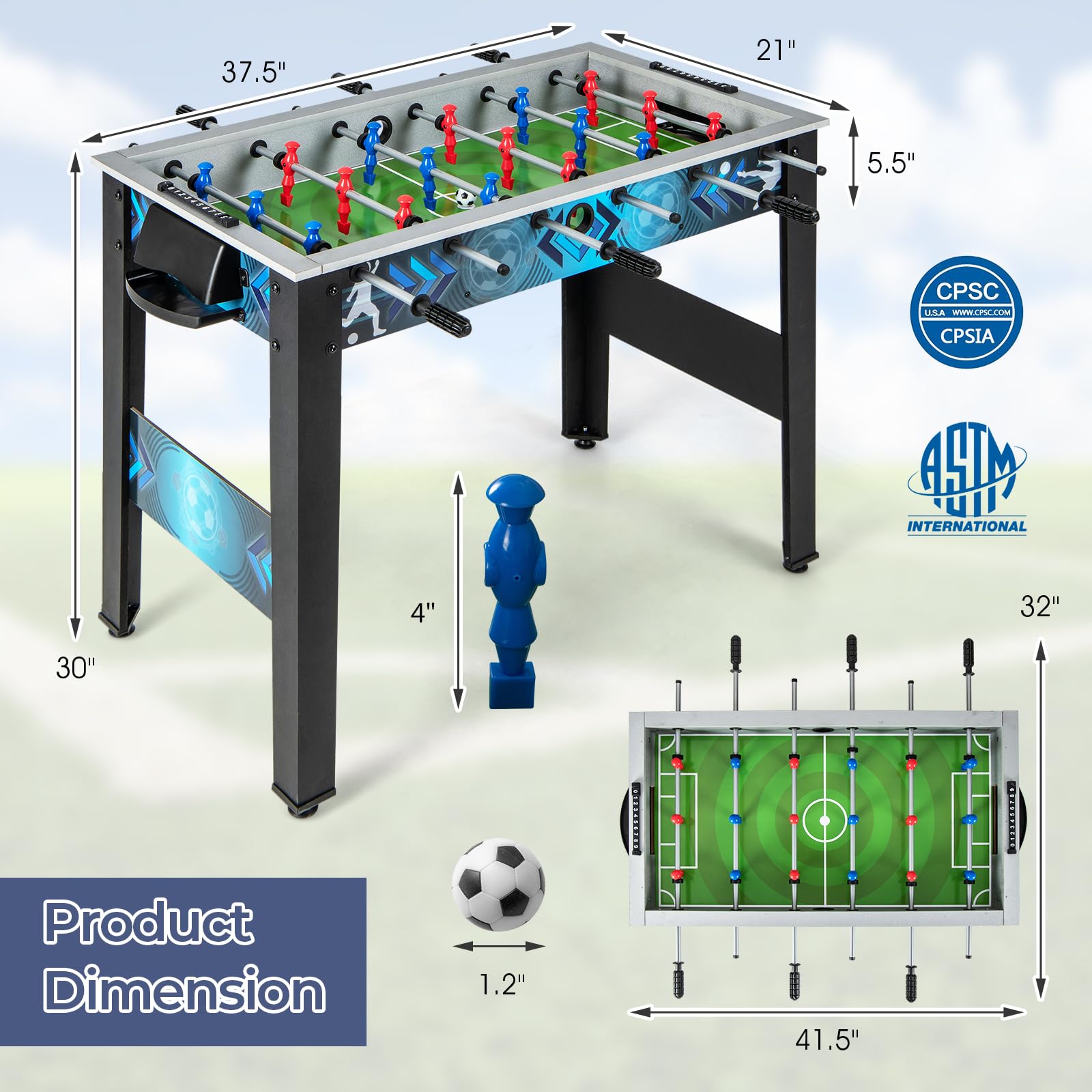 Foosball?Table?Dimension:?34.5"?x?18"/ 87.5cm?x?45.5?cm