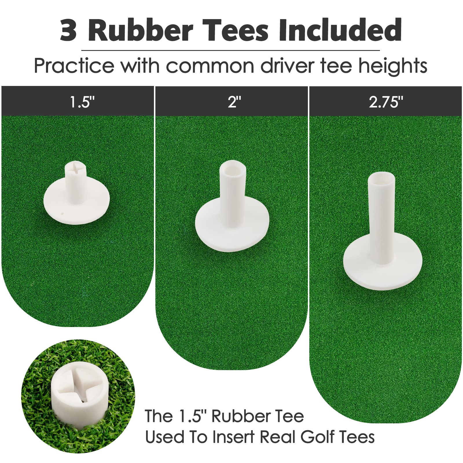 Goplus Golf Mat, 5 ft x 3 ft Golf Hitting Mats Artificial Turf with 3 Rubber Tees, Golf Practice Mat for Driving