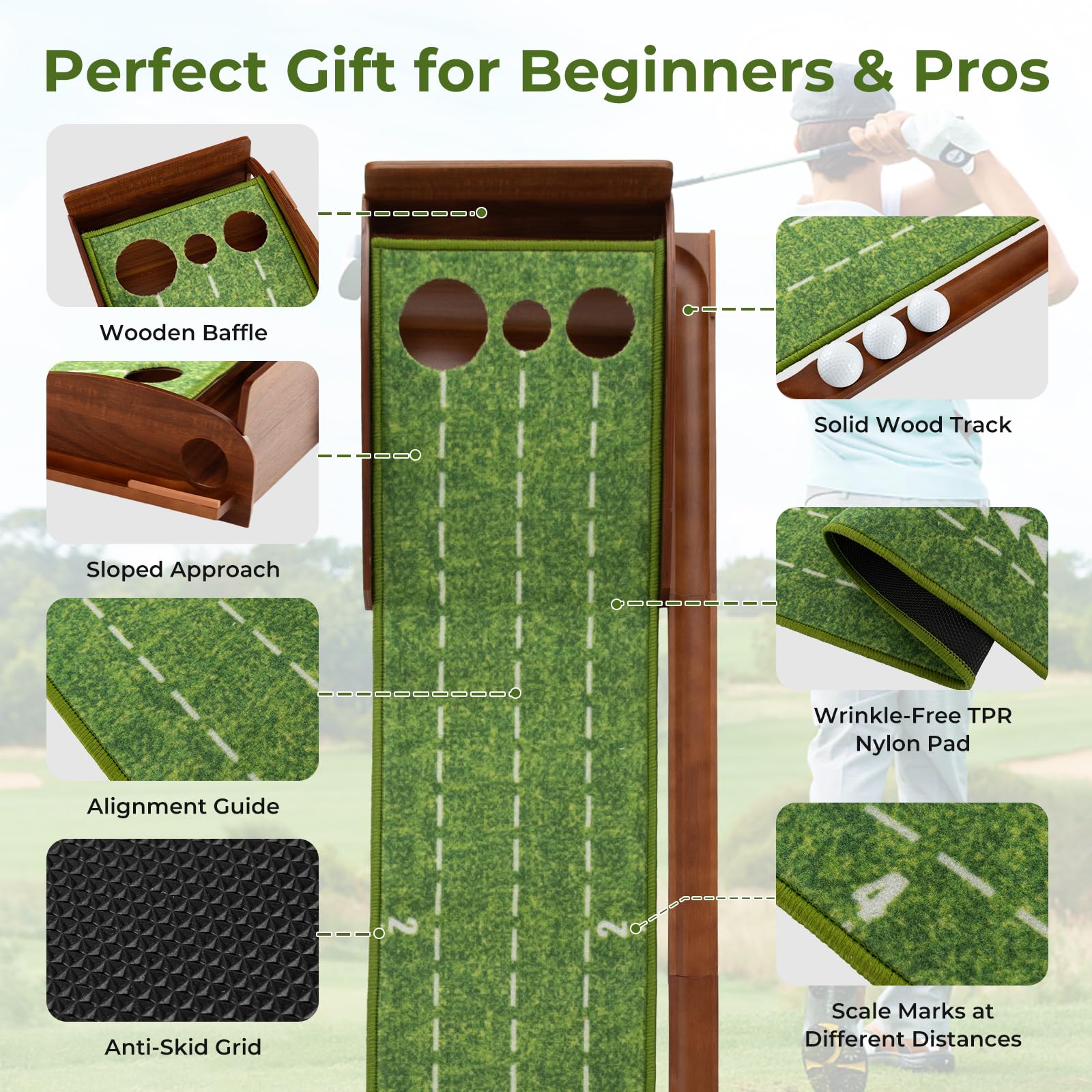 Are you an avid golfer looking to improve your putting skills? Are you tired of constantly retrieving your golf balls after each practice shot? Here is the perfect solution for you - the golf putting green with automatic ball return! No more bending down to retrieve your golf balls after each putt. With the Golf Putting Mat, the automatic ball return system saves you time and effort, allowing you to focus on improving your putting skills. Different sizes of holes provide different difficulty levels, which makes this mat cater to all skill levels. The magnetic ball return track is easy to setup and the pad can be rolled over, convenient for storage and transport.