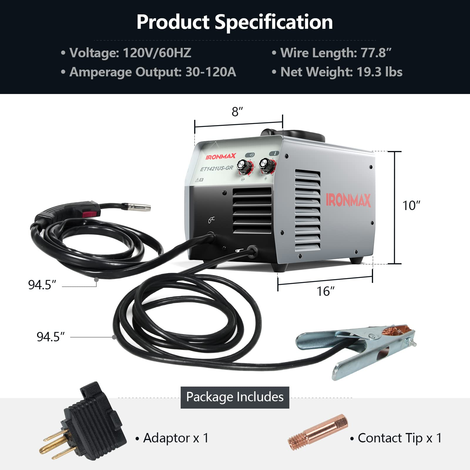 This gasless MIG welding machine is simple to operate and easy to carry, which is very suitable for beginners and skilled users. It can be applied to DIY projects, general metal manufacturing, household maintenance, repair, etc. What's more, it features adjustable output current and wire feeding speed, which is easy to set according to the parameter label on the shell. And the machine uses flux core wire to achieve smooth welding, and therefore, there's no need to connect to a bulky gas cylinder. You can easily carry it anywhere with the integrated handle. For your purchase reference, the welder has a fixed MIG torch, a ground clamp and a bonus 20A-15A adapter, and a 0.030'' contact tip. It is compatible with flux core wires of 0.030''-0.035''