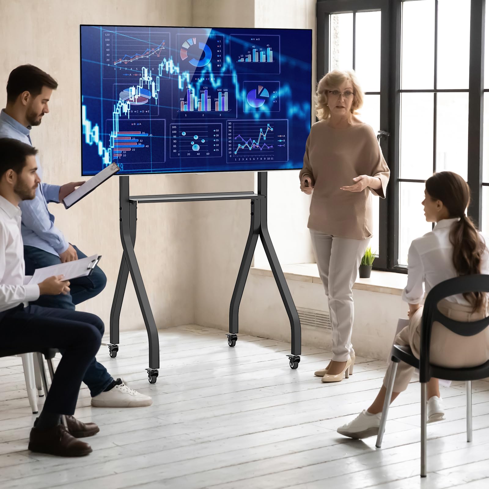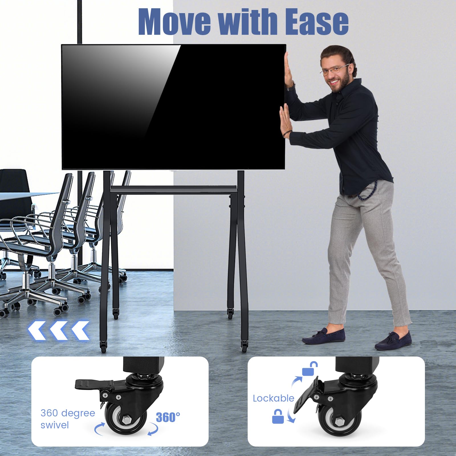 - Move with Ease: Our portable TV stand features 4 lockable universal casters, making it a breeze to move across different types of floors and be securely locked in place when desired. Whether used in homes, offices, schools, or commercial settings, it offers flexibility and ease of maneuverability for any situation.