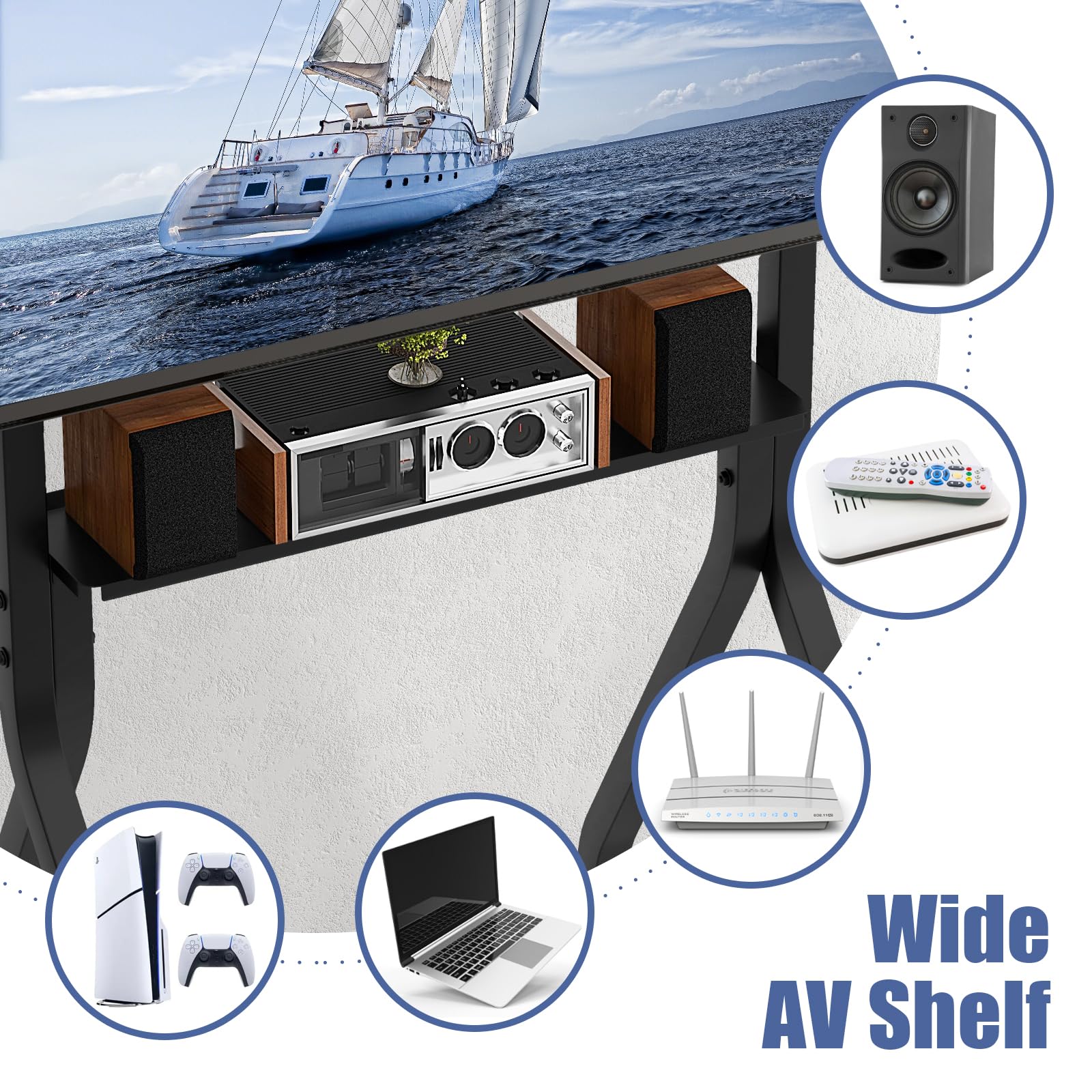 - Spacious Media Storage: The wheeled floor TV stand includes a wide AV shelf that offers ample space for your essential media devices, such as sound systems, routers, laptops, and gaming consoles. Keep all your multimedia equipment organized in one place.