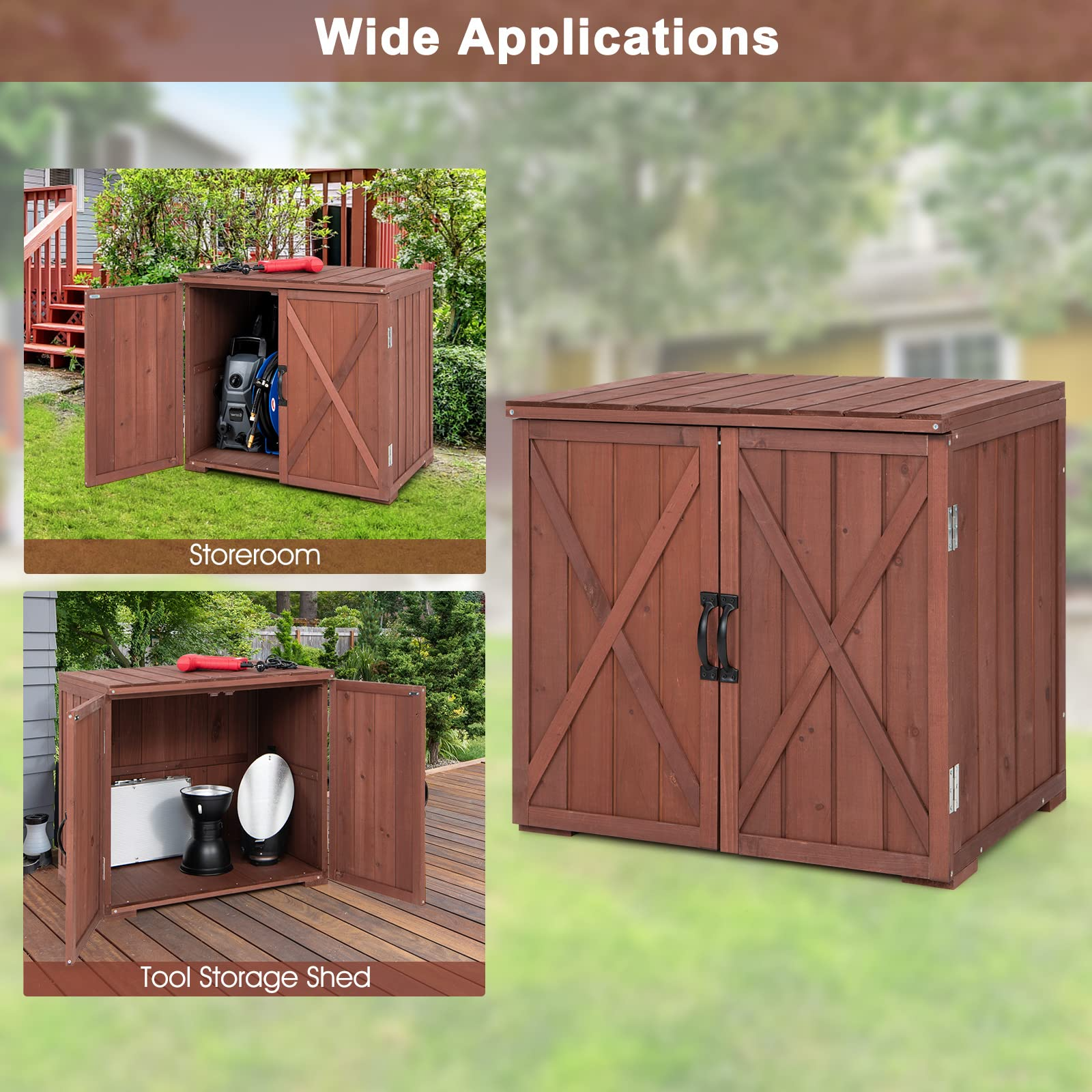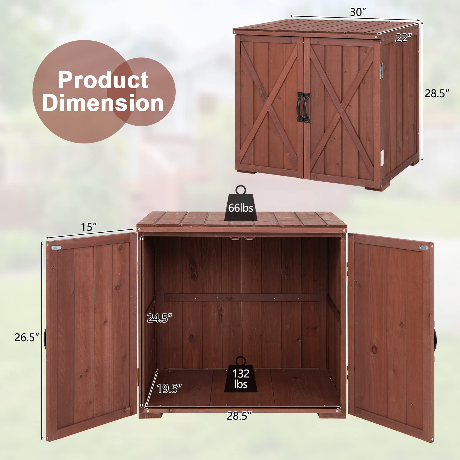 Goplus Outdoor Storage Cabinet, Wood Garden Tool Shed with Doors for Patio Backyard, 30" x 22" x 28.5"