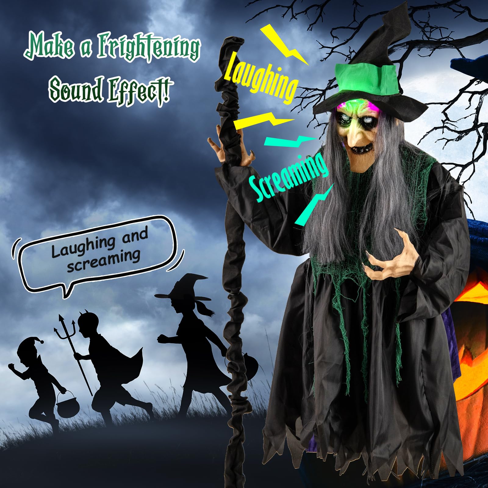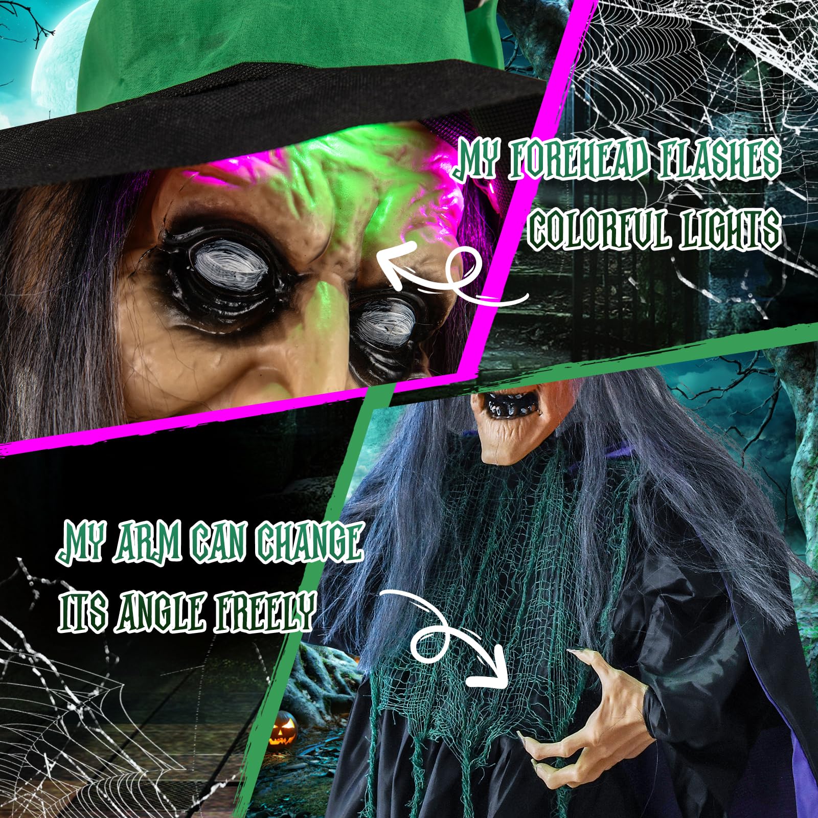 - Perfect for Halloween: Ideal for greeting trick-or-treaters or enchanting guests at your Halloween party, this witch animatronic adds a level of eerie festivity. Its size and authentic design make it a memorable centerpiece , ensuring your home is a must-see stop every Halloween.