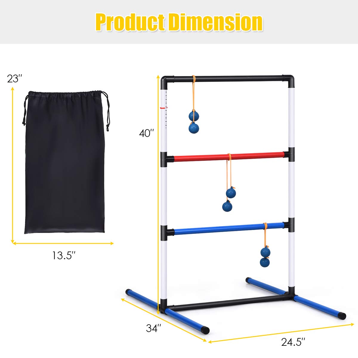 Designed for 2 to 4 players, our ladder ball game set is great whether you're at the beach or in the backyard with friends and family members. High quality PVC pipes and joints ensure that the toy does not fall apart during use. And the I-shaped structure greatly improves the stability of the ladder, making it easy for you to enjoy the game with your family and friends. In addition, the officially sized bolas are made with safe, soft plastic, so that you can be assured to let your kids join the play. Fun can be found anywhere and anytime in this game as you pack the set in the drawstring bag and take it along.