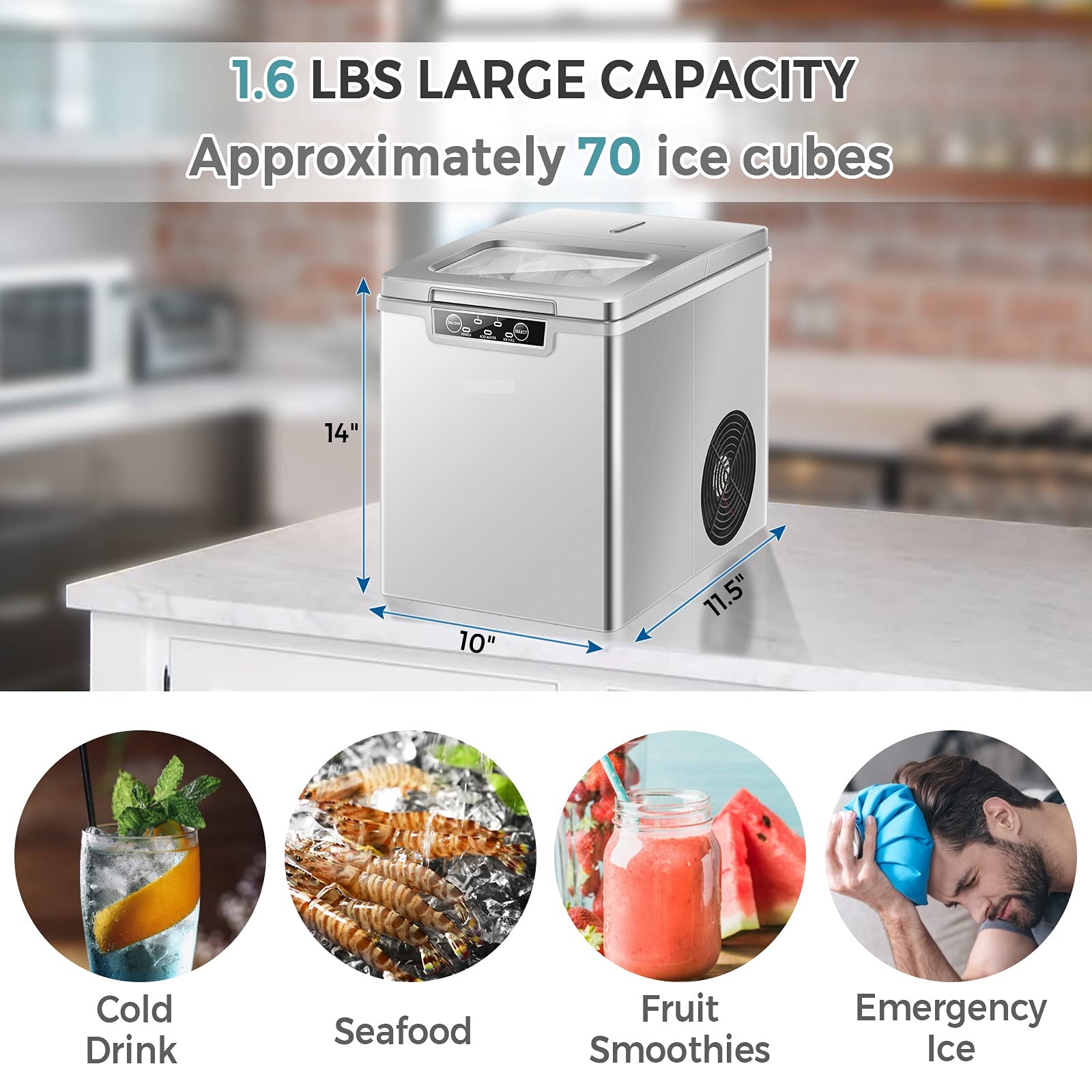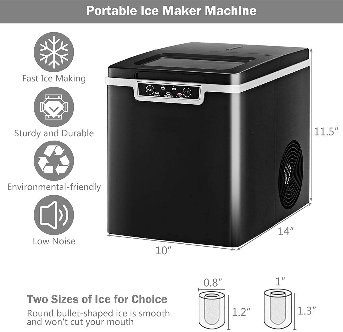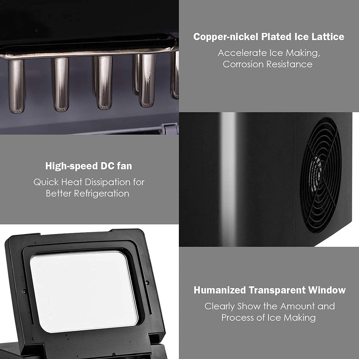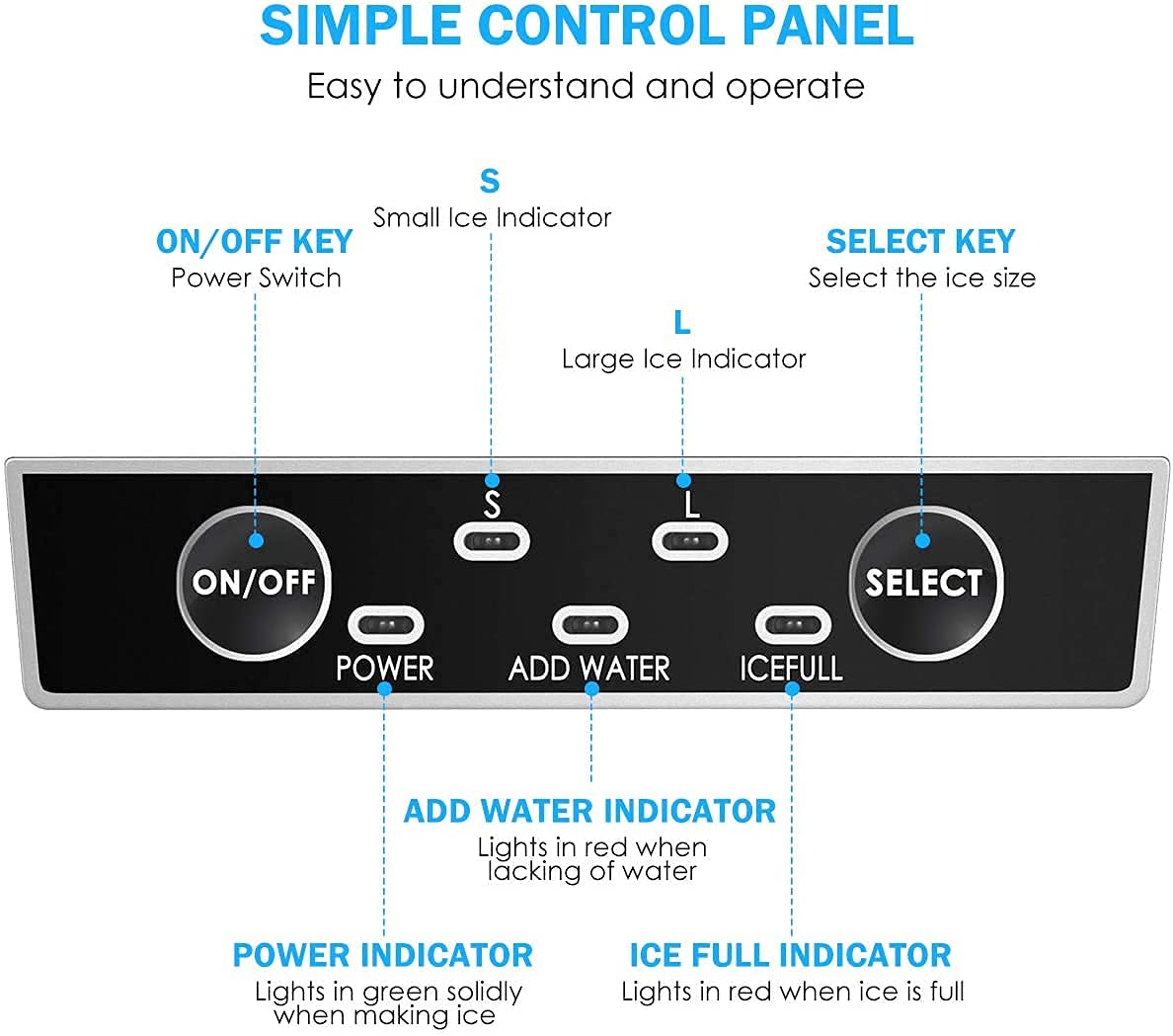 Our ice maker machine is perfect for party, gathering, RV and kitchen use. It can produce ice cubes within 6-13 minutes, providing enough ice for you to make smoothies, ice cream and seafood. Moreover, you can also add the ice produced to your juice and beers. With a clear and simple control panel, it is easy and convenient to use this machine. Just need several steps and good ice is there for you. You can make plenty of ice cubes in advance, especially before a gathering. The smart design helps you know the condition of ice making. When the ice bucket is full, you’ll be alerted to remove them so more ice could be created. In a word, our ice maker gives you not just the most efficient ice cubes but also the freshest.