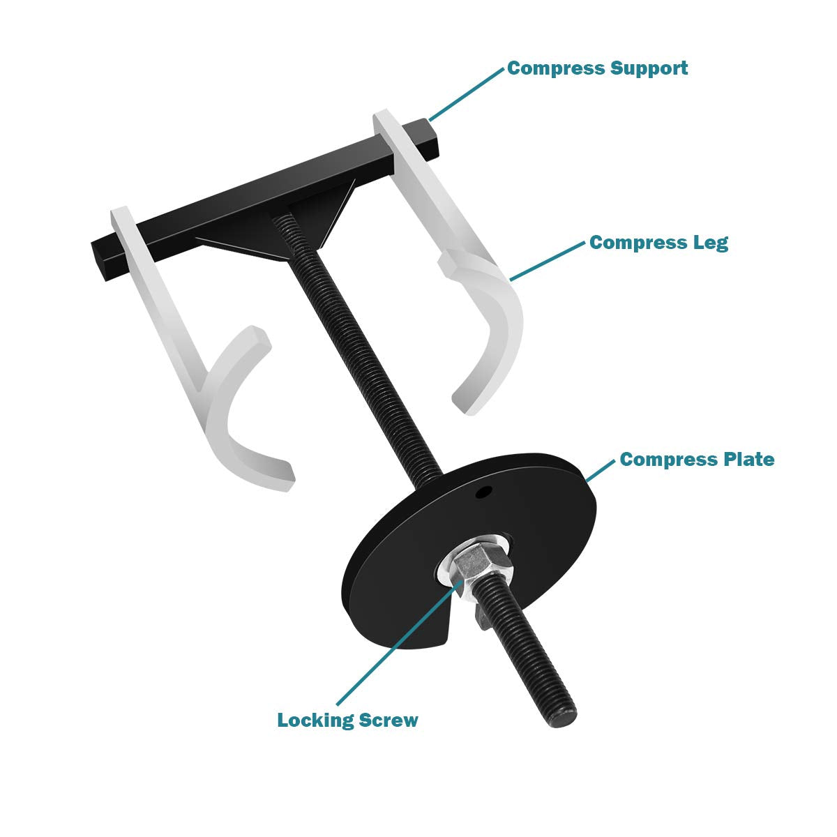 Do you feel tricky about removing the snap ring on a transmission clutch? Our transmission clutch spring compressor with legs will be very helpful for your work. This a handy adjustable tool for removing or installing the snap ring on a transmission rear clutch piston. It applies pressure to the clutch drum's retaining washer to compress piston return springs in order to remove or install snap rings during repairs or overhaul. And it's suitable for most American cars and light trucks such as Crown Victoria, Town Car, Ranger, and Focus. The lightweight and compact design allows you to carry it easily and take up little space in a room or your car.