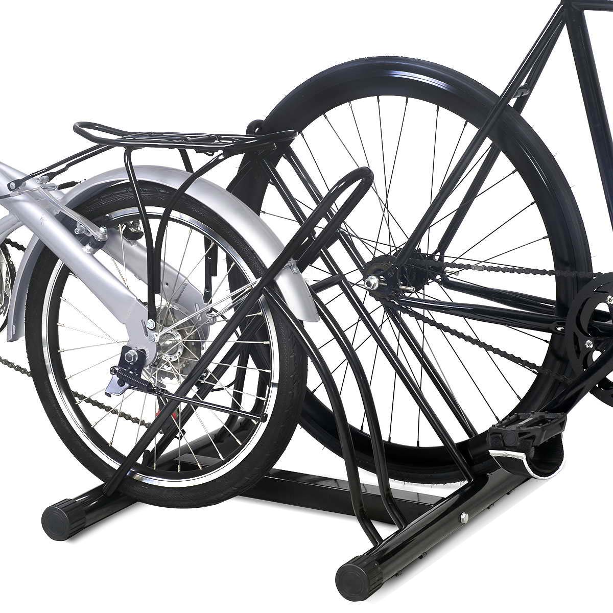 This New Bike Storage Stand is ideal for u to park and store your bikes as it can hold 2 bikes. It is convenient for u to store your bikes with this perfect helper. The heavy-duty construction with dual purposes provides safety and convenience and saves more space when bikes are not used. It can also protect bikes from scratches and damage from other products stored in the garage. U could park your bikes in different directions and arrange the parking more wisely. Competitive price with high quality is realized! Notes: Assembles in minutes; instructions, tools, and hardware are required