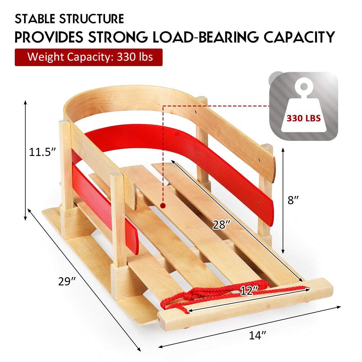 Red paint makes the sledge look more beautiful and can be used as an ornament
